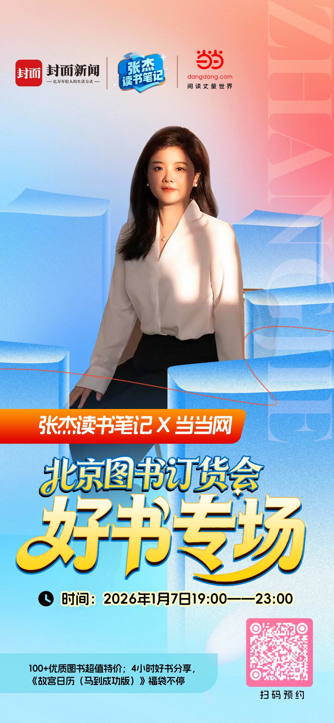 1月8至1月10日,2026(第38届)北京图书订货会将在北京举行。在这场年度出版盛会前夕,1月7日19点,封面新闻旗下深度阅读品牌“张杰读书笔记”将联合当当网,率先带来一场为期四小时的“迎新”专场直播。届时,主理人张杰将携一份精心筛选的多元书单,与读者共赴一场云端阅读之约。